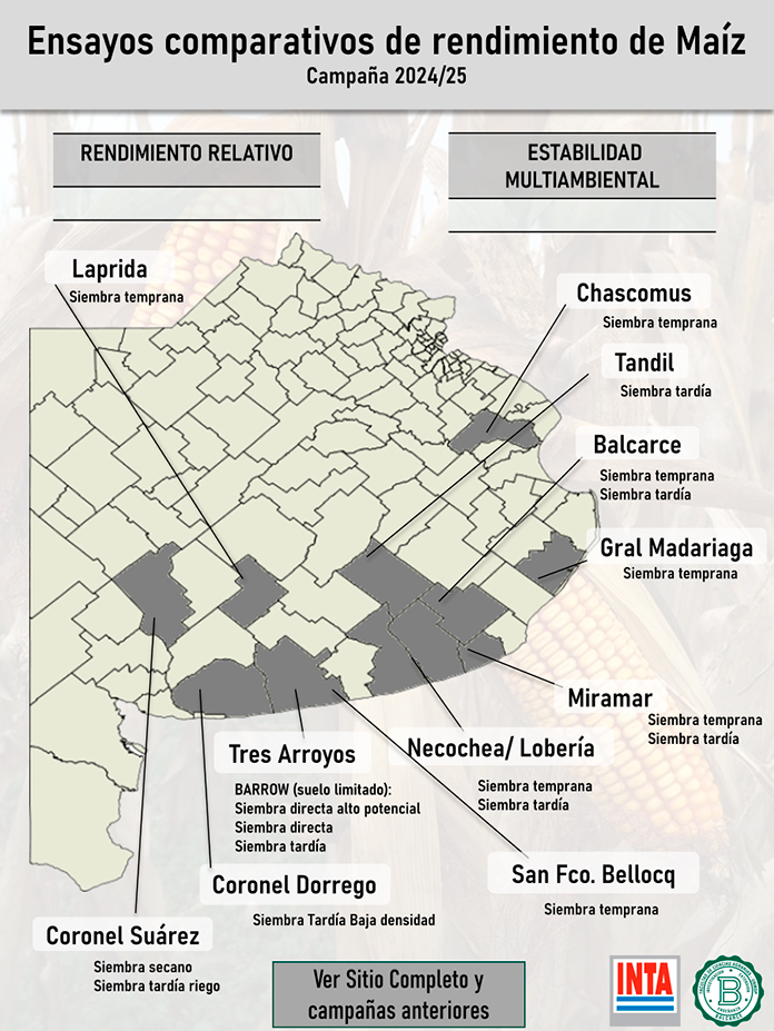 Los ensayos se condujeron en Laprida, Chascomus, Balcarce, Tandil, General Madariaga, Miramar, Lobería, Necochea, San Francisco Bellocq, Coronel Suárez, Tres Arroyos, Coronel Dorrego.